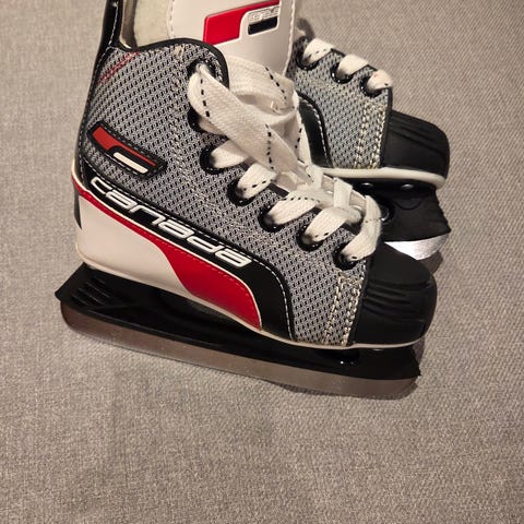 Norwegian Barne Skøyter i størrelse 27, designet for ishockey. Skøytene har svart og hvit farge og er egnet for barn.