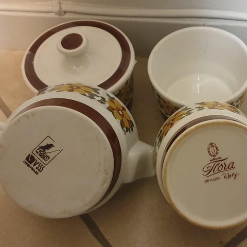 En kjøkken tallerken i serien flora fra Stavanger flint. Hel og fin, to små merker i midten, se bilder.