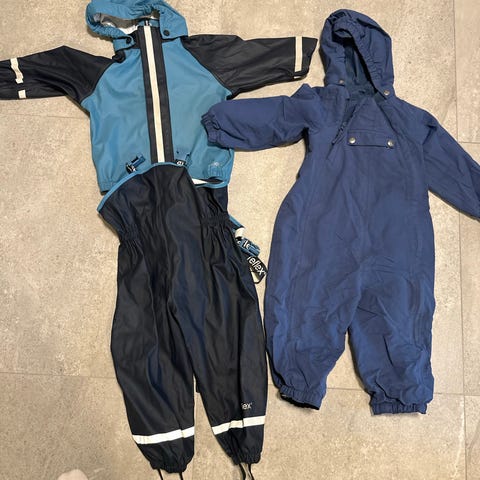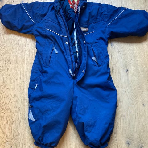God og varm vinterdress. Intakte fotstrikker. Litt falmet/farget på knær og rumpe. Kjøpt brukt og brukt av 2 barn.