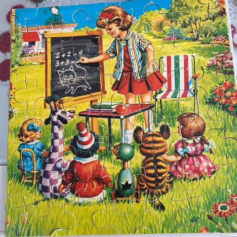 Monopol Brettspill fra 60-tallet eller eldre til salgs. Det mangler en metallbrikke og 2 av brikkene har brukket «bena» (se bilde). Det er 29 hus, ikke 32 som opprinnelig. Noen få sedler mangler.