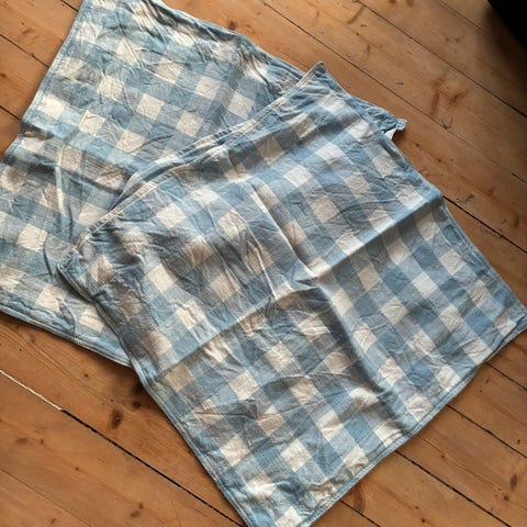 Blå/grå putetrekk: H&M Home i 100% Lin