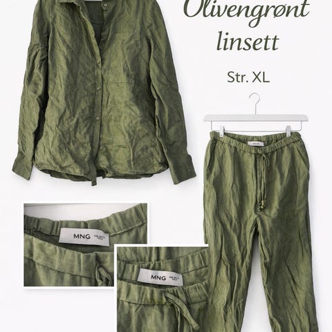 Lin bukse i størrelse XL, fra H&M. Buksa er i fargen kaki grønn og kun prøvd på en gang. De har en løs passform og elastisk midje med snøring for justering. Den er i 43% viskose, 31% Lin og 26% bomull.