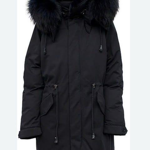 Cedrico Coyan jakke/parkas med veldig fin pelskant. Jakken er lite brukt, men det er en liten rift bak ved knappen i splitten bak, men den kan nok syes med noen få sting. Ellers er jakken hel og fin. Røyke- og dyrefritt hjem.