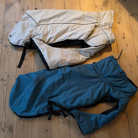 «Vinteroverall perfekt for snøværet. Overallen er lett og varmer godt. Med en beskyttende krage. Kommer i en rekke størrelser for å passe mange hunder»