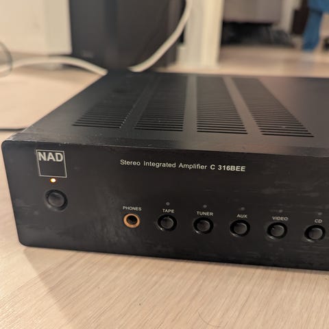 Pent brukt NAD 316 surround sound amplifier selges. Virker som den skal men mangler fjernkontroll. God til kun stereo bruk da den er kraftig og har ekte watt.