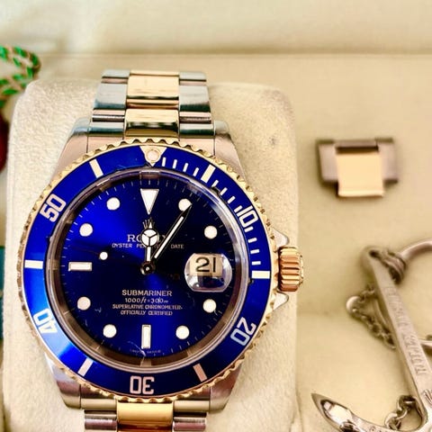 Selger en Rolex Submariner Date “Bluesy” i two-tone (stål/gull).