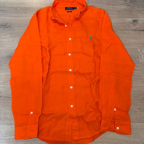 Ralph Lauren Blå Lin Skjorte i størrelse M. Laget av lin. Nypris 2295,- Skjorten er kun vasket og testet på 1 gang. Fremstår som ny. Slim fit.