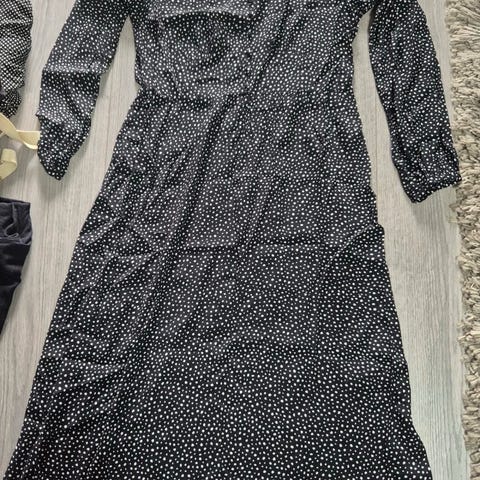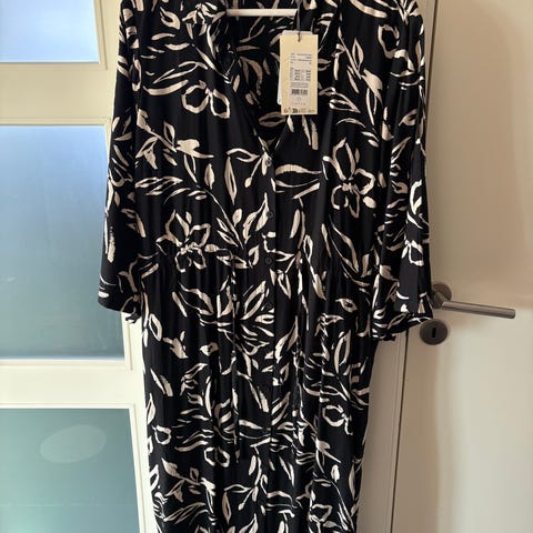 Samsøe Samsøe hverdagskjole i størrelse S, farge svart med hvite mønsterdetaljer. Laget av polyester. Passer for kvinner L størrelse