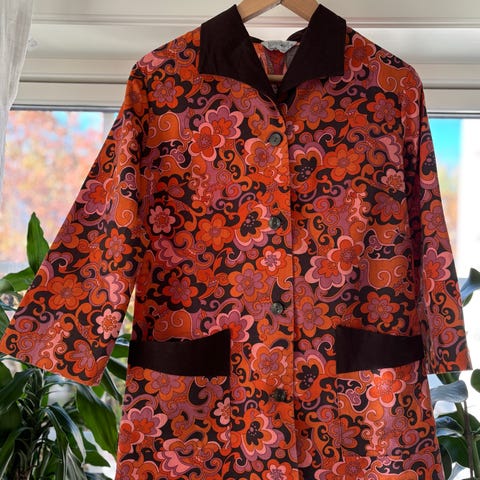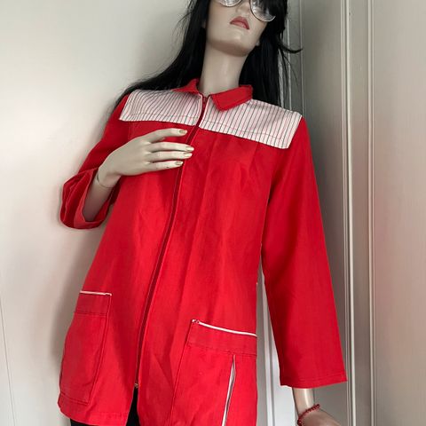 Alle plagg er i str 40. Blazer og skjorte er normale i str. Bukse og skjørt er ganske smale i livet (men skal sitte høyt ifølge 1997-mote), men normale i str ellers. Kan vaskes i maskin.