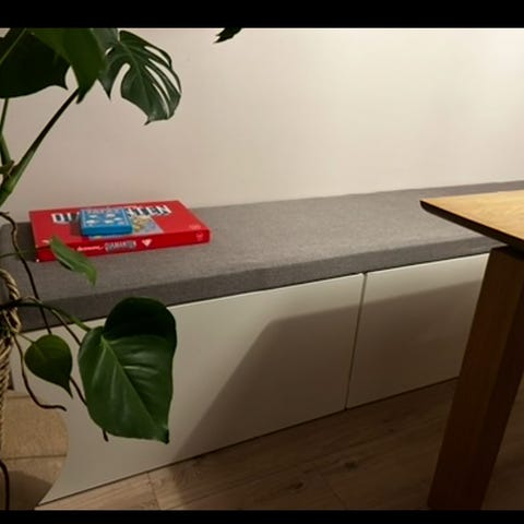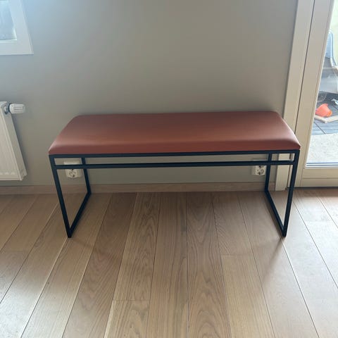 Helt ny sort benk med rygg selges. Er aldri brukt, den er kun montert opp. Nypris 1999kr selges for 999kr.