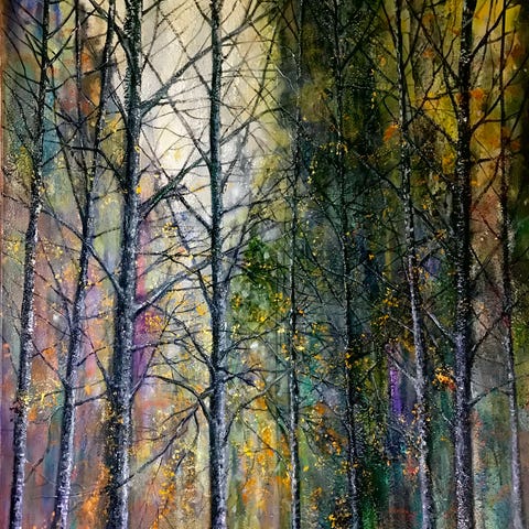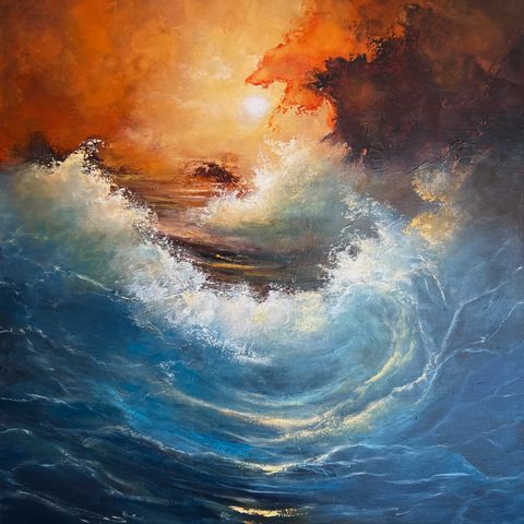 To store malerier vurderes solgt. Det er brukt akrylmaling, perler og folie, og fins kun et eksemplar av hver. Bilde nr 1 inneholder mer glitter og perler. De er malt av meg. Størrelse på bildene er 80*100