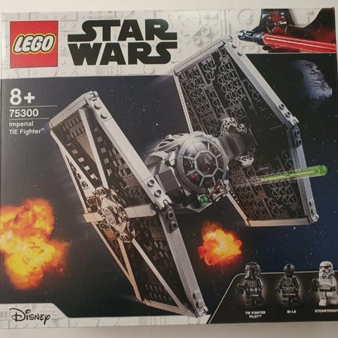 LEGO Star Wars TIE Fighter. Settet er del av Star Wars-temaet og inneholder detaljerte byggeklosser for å bygge en TIE Fighter-modell.