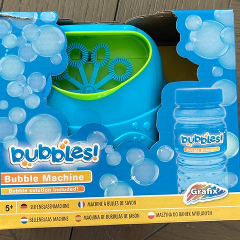 Helt ny såpeboblemskin som passer til barnesykkel. Denne var skikkelig tøff i butikken men når vi kom hjem og guttungen skjønte hvordan den skulle så var det helt uaktuelt å ha den på sykkelen 😂😂