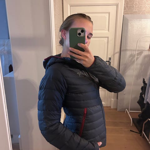Arc'teryx jakke for dame i størrelse S. Jakken er grønn og laget for sport og friluftsliv. Den har hette, glidelåslommer og en innerlomme med glidelås. Materialet er slitesterkt og egnet for ulike værforhold.