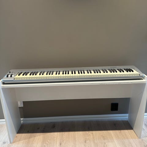M-Audio Keystation 49 MIDI Keyboard med 49 tangenter. Svart farge og kompakt design. Egnet for musikkproduksjon og opptak med datamaskin.