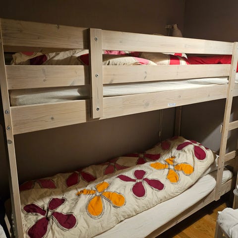 Solid køyeseng med sengehest