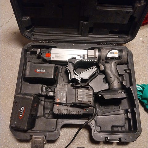 Leveres i koffert med batteri og lader.Drivkraften er gass og oppladbart batteri.