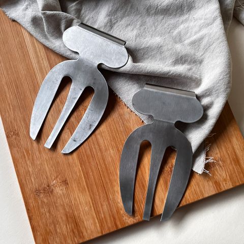 Salatbestikk med håndtak formet som purre. Både praktisk og dekorativt. Noen bruksmerker på håndtakene, men ikke noe veldig synlig. Se bilder for mål. 🌿