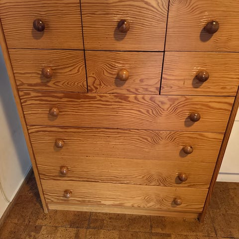 Furuskap/kommode malt hvit med helt nye sorte håndtak, bare håndtakene kostet 500,-