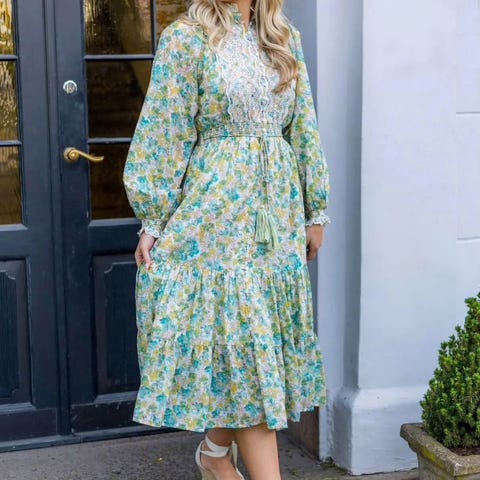 Selger denne nydelige maxikjolen fra ByTiMo fordi den bare blir hengende i skapet mitt. Perfekt til alle sommerens anledninger. Den har et nydelig blomsterprint og et flatterende snitt med knapper hele veien ned. Den er ikke lenger i salg i butikk.