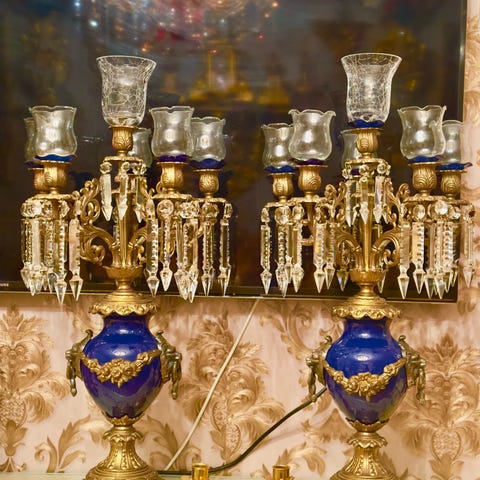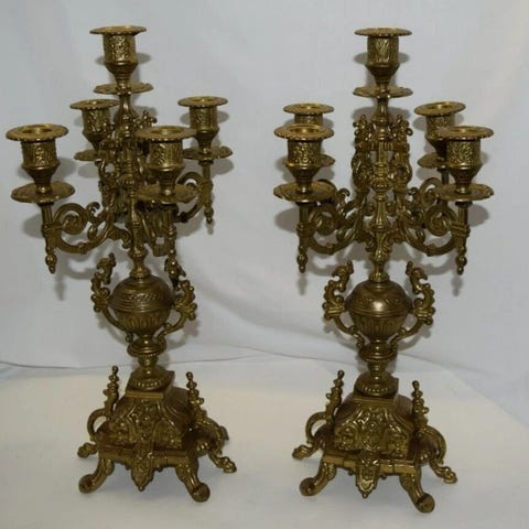 Brevettato stor og dekorativ 5-armet kandelaber i massiv messing. Klassisk barokk/rokokko-inspirert design.
