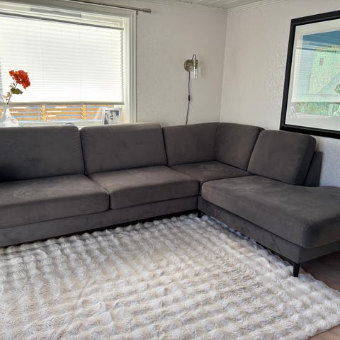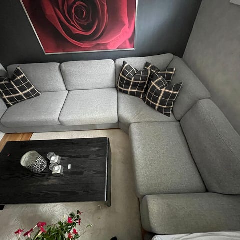 Stor og flott hjørnesofa fra bohus. Fargen er grå. Masse bruk igjen. Ingen flekker, men det er en liten «bulk» bak den ene ryggen. Ikke synlig når den står inntil vegg. Selges pga flytting.