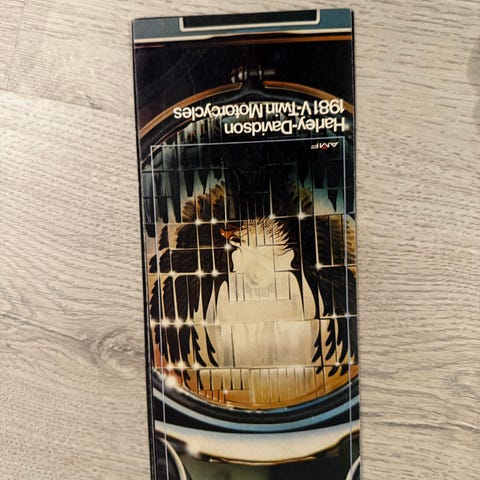 Har etikett fra Harley-Davidson Trondheim på baksiden.