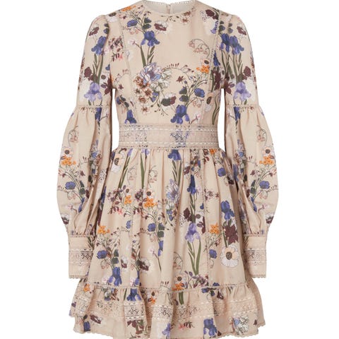 Fay Frill Mini Dress i str.M. Fra By Malina. nydelig kjole - i et vakkert stoff med lys grønt print. Lapper henger på, aldri blitt brukt