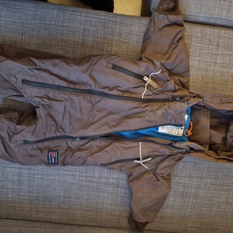 Lite hull, fotstrikker som bør byttes og slitasje på rumpe og knær (se bilder). Men fremdeles god og varm, og vil være en perfekt ekstradress.