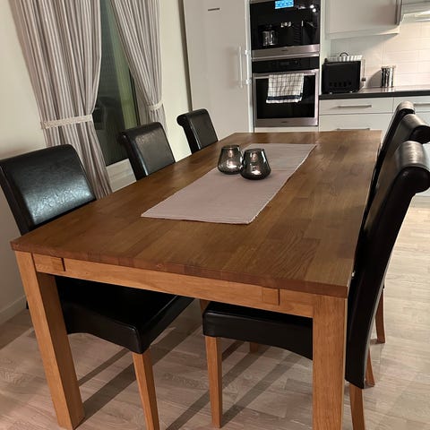 Ingen synlige skader på bord eller stoler. Kjøpt for 4 år siden