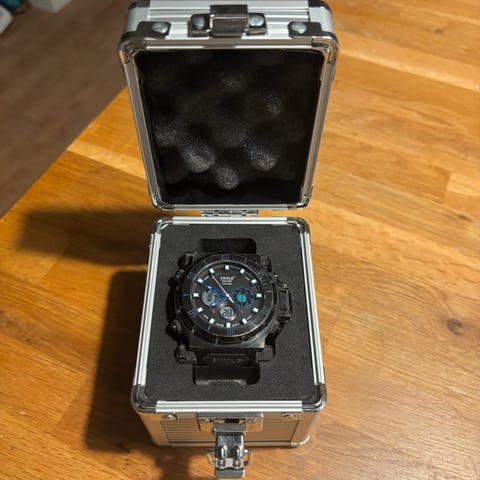 Lite og pent brukte, fremstår som ny, oppbevart i displayboks siden ny. Selges til fordel for annen klokken.