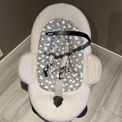 Vippestolen kan brukes separat, eller enkelt festes stokke steps stolen med et klikk. Kan sende bilde av stolen den passer på om du lurer på det er riktig stol.