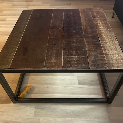 Selger et fint høyt salongbord. Det er malt i fargen dempet sort. Skikkelig trebord.