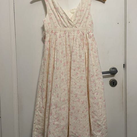 Perfekt til bryllup, konfirmasjon eller andre spesielle anledninger i kalenderen. Denne kjolen er designet med korte ermer, perlebesatt overdel, midjebelte med sløyfedetalj og vid A-formet skjørt. Lukkes med glidelås bak. Hvit.*