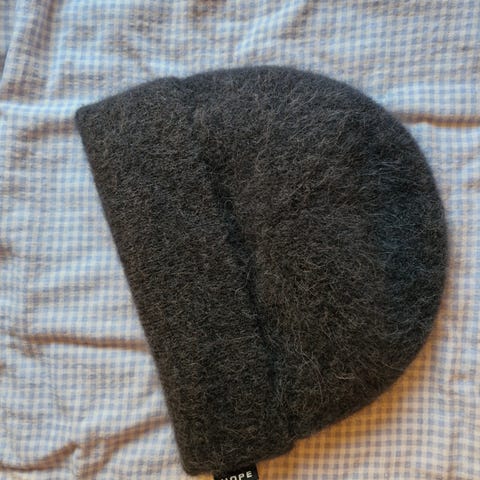 Repeat ny lue i brun farge, laget av 100 % kasjmir. Passer til kvinner, i størrelse one size. Materialet er organisk kasjmir, som gir varme og komfort. Selges 750 kr