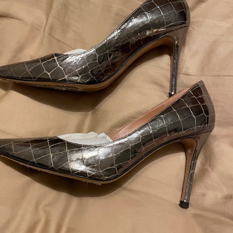Rålekre, vakre stilett, dyp rød, silke med rosett. Str 37,5. Brukt en gang.