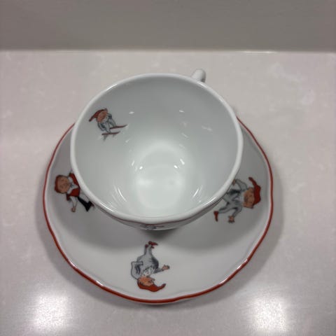 To middagstallerkner, 5 kaffe med skål og asjetter, askebeger og andre småting.
