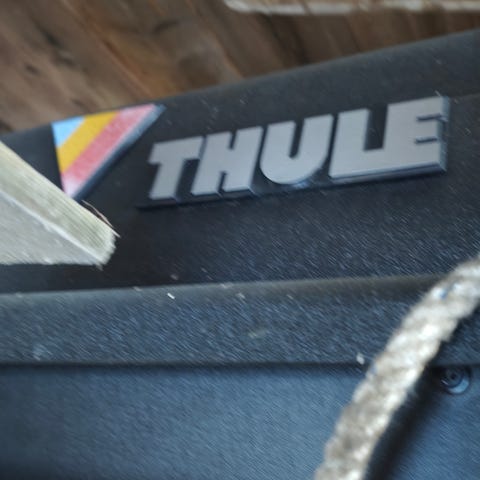 Pent brukt takboks med takbøyler. Vet ikke modellnavn. Jeg har brukt den på en VW Golf, men regner med den passer på andre biler.