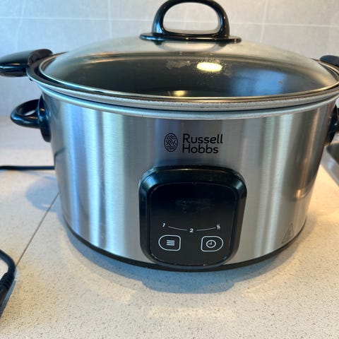 Russell Hobbs Chalkboard Slow Cooker med en kapasitet på 3,5 liter og svart farge. Laget med en avtagbar keramisk gryte for enkel rengjøring. Utstyrt med slow cooker-funksjon som kan tilberede mat på 3 varmeinnstillinger. Designet med en tavleoverflate for å skrive meldinger eller matmerking.