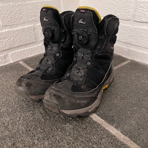 Sorel Barne Vintersko Unisex i størrelse 32. Litt små i størrelsen. Lite brukt, da vi hadde flere sko å velge mellom. Skoene er laget av brun semsket skinn med fôr av kunstig pels. De har snøring foran og slitesterk gummisåle med godt grep. Skoene er designet for å gi varme og beskyttelse i kalde og våte forhold.