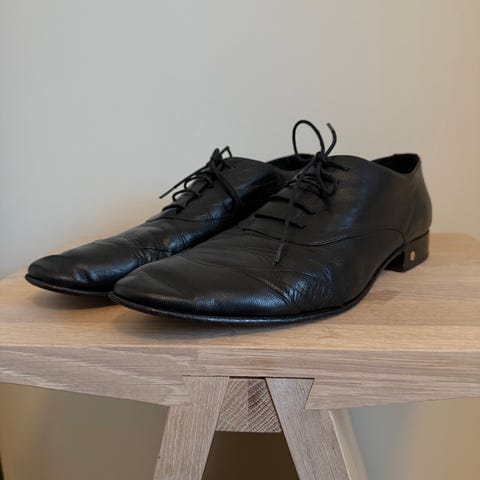 Corneliani pensko i størrelse 40 (6) med svart farge. Skoene har snøring og er laget i blankt materiale. Egnet for formelle anledninger eller bruk som pent fottøy.