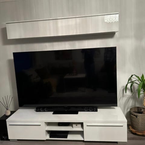 Pent brukt tv-benk til salg. Alt av skuffer fungerer som det skal. Liten skade på venstre side (se siste bilde).