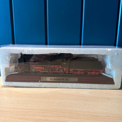 SOLGT RocoTrans Europ Express modelltogsett bestående av lokomotiv og flere passasjervogner. Togsettet har en karakteristisk krem og burgunder fargekombinasjon. Modellen er detaljert og designet for bruk i modelljernbaneoppsett. DC, med lys og ikke lyd. Er en ældre model, men kører fint. I original emballage. Kan evt. medtages til Norge, og sendes derfra. Vi bor i 4070 Kirke Hyllinge Danmark, og ikke Randaberg. Sendes enten fra Danmark eller Norge på købers regning. Modtager Wipps. Beløbet er i Norske kr.