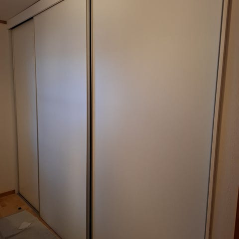 Skyvedører gis bort mot henting. Gis bort kun samlet (dører og skinner). Dørene er 231cm høye og 97cm brede. Det er 3 dører.
