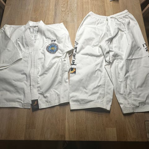 Selger taekwondo-utstyr, kan kjøpes hver for seg eller samlet.