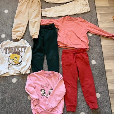 Liten jentepakke med 2 bukser, t-skjorte og genser 116