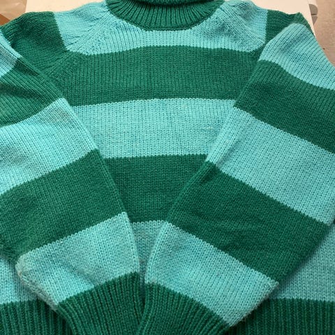 Lindex genser i størrelse L for kvinner. Genseren er grønn og laget av bomull. Den har et enkelt design og passer til hverdagsbruk.