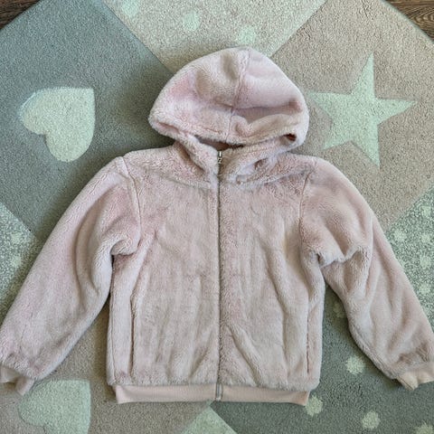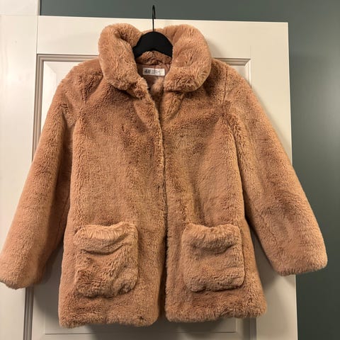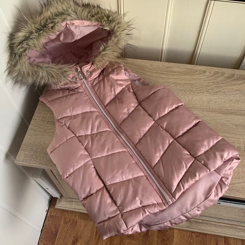 Pelsvest, brun for og Bruno pels med beige inslag, ukjent merke. Strl 134-140. Kjøpt på bruktbutikk men ikke brukt her