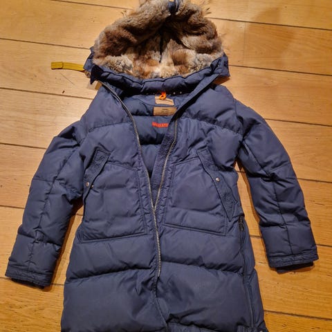 Parajumpers vinterjakke i størrelse XS for dame. Jakken er grønn og laget av dun, noe som gir god isolasjon og varme. Jakken har hette med pelskant og er designet for kaldt vær.