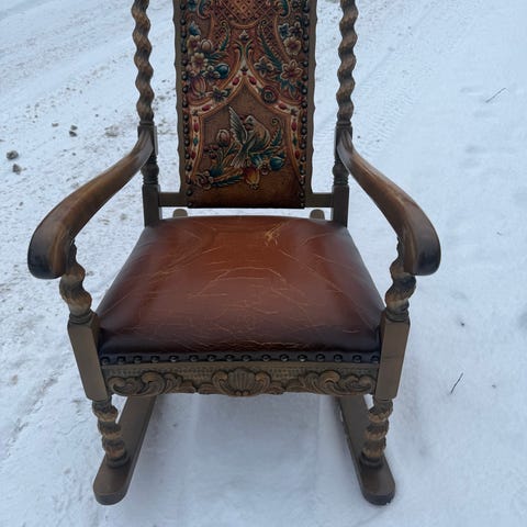 Antikk Treskrin med metallbeslag